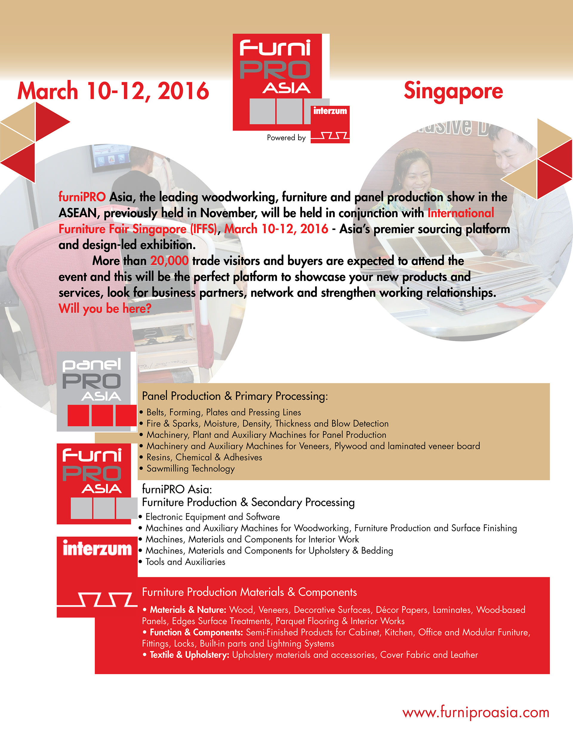 A flyer I made for 2016's furniPRO furniture trade show in Signapore during my internship at Koelnmesse.