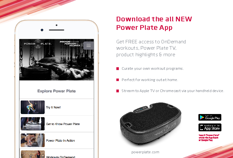 An insert that comes in every box for the Personal Power Plate promoting the Power Plate app.